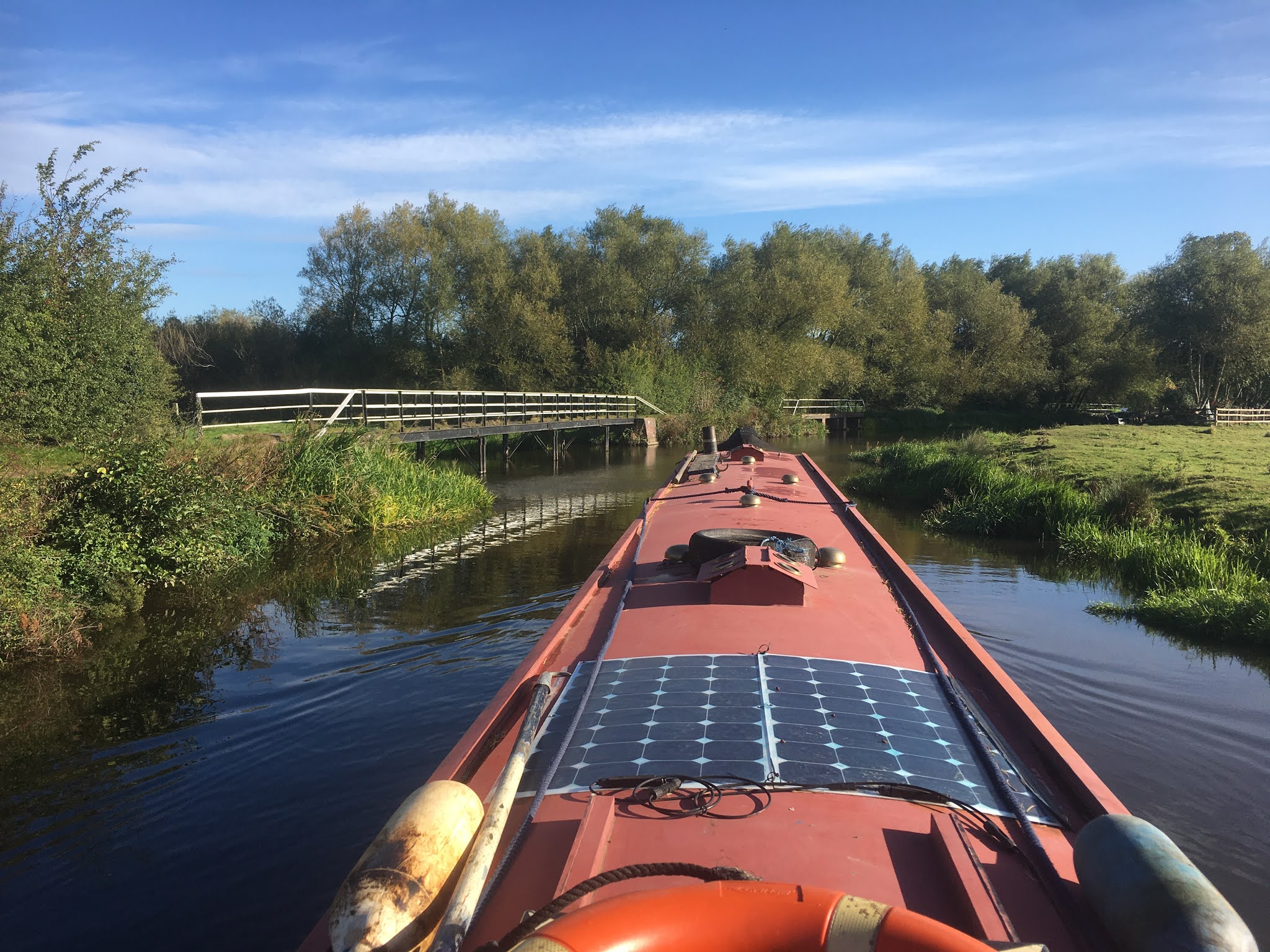 After taking on water before the river lock, we passed across the River Trent above the weir, following NB Delhi, and enjoyed the scenic side bridges and weirs across the water meadows to Wychnor. Our friend Jan had walked from Alrewas and took photos of Annie as we moved through the riverine channel.