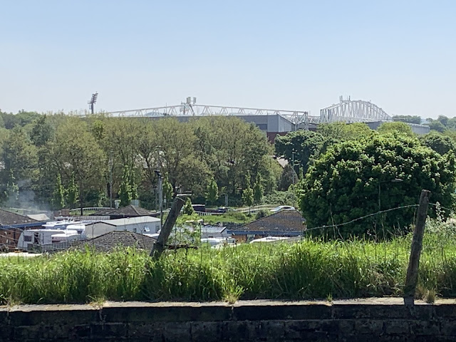 We stopped for lunch in the sun on the high embankment which crosses the valley, echoing that at Burnley. We overlooked Elwood Park, home of Blackburn Rovers, and the skilful players at the local crown green bowling club.