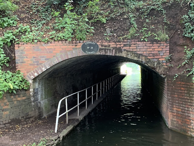 We set off early in sunshine. 300 yards from Kinver lock, John suddenly spotted large red sandstone boulders in the canal next to a cliff fall, some six feet into the canal. We slid past a foot away, luckily! Markers would be good, CRT, until they are cleared!